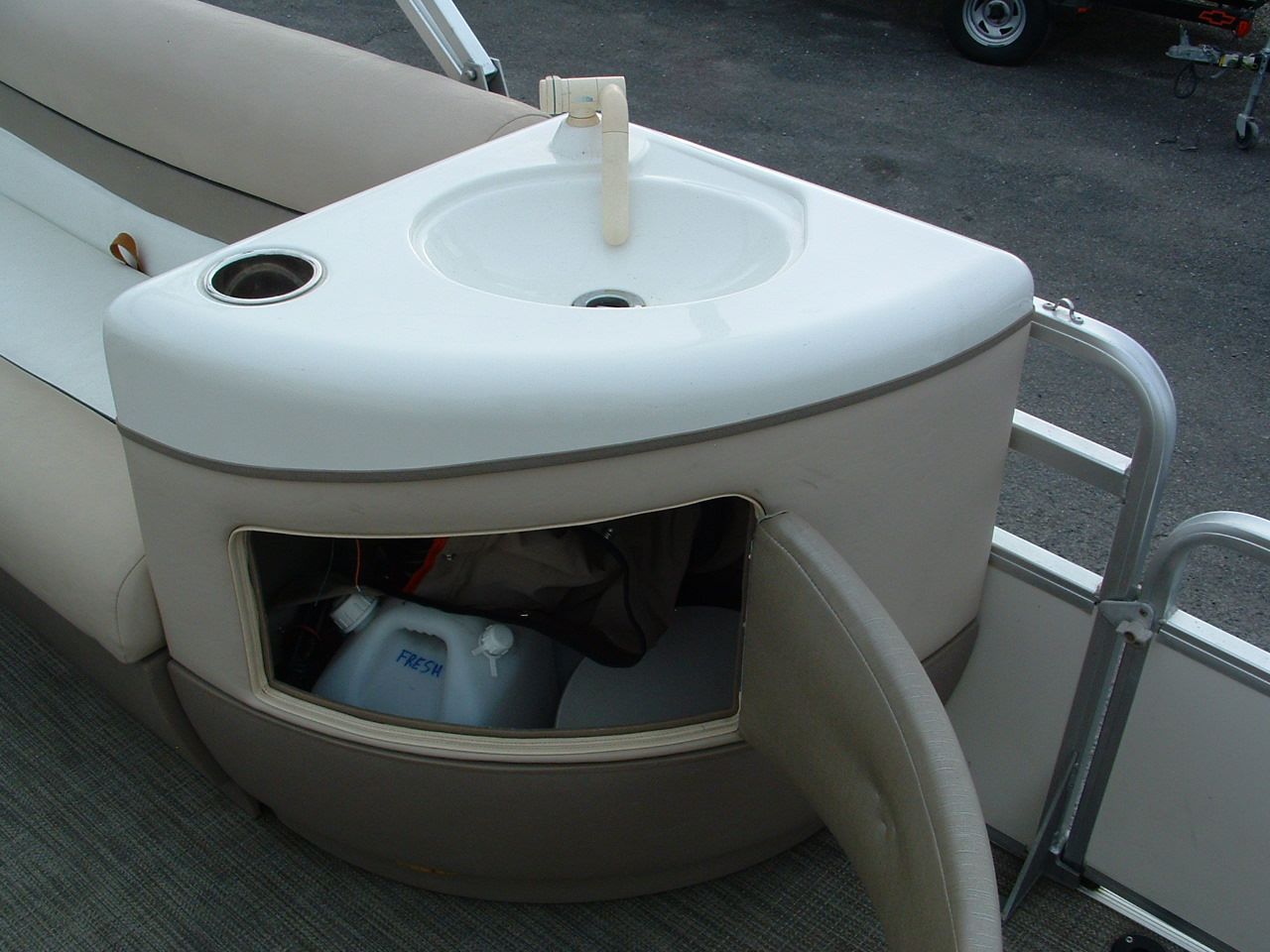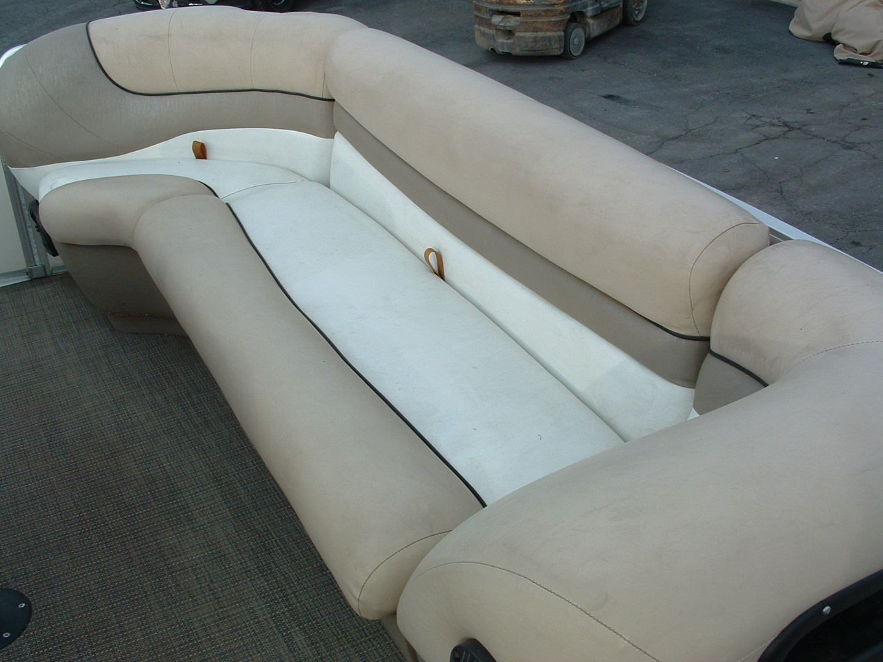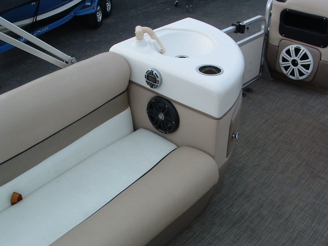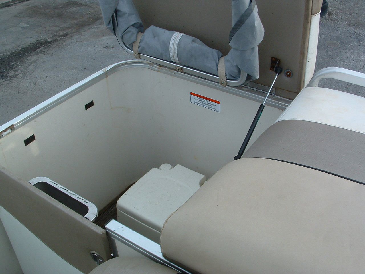 - Tearing out the carpet AND the wood floor and replacing with a metal floor for stability in rough water and then putting vinyl flooring in