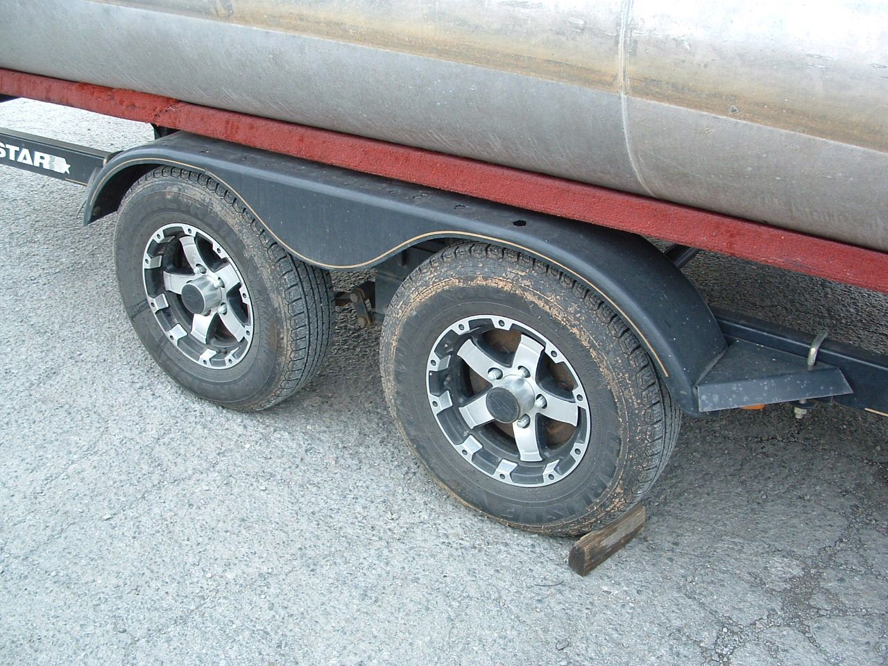 ...Tandem Axle Trailer w/brakes, swivel tongue, mag wheels, and tongue ladder